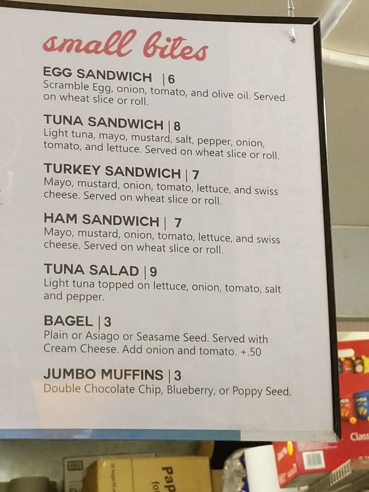 Scramble egg, onion, tomato, and olive oil. Served on wheat slice or roll.